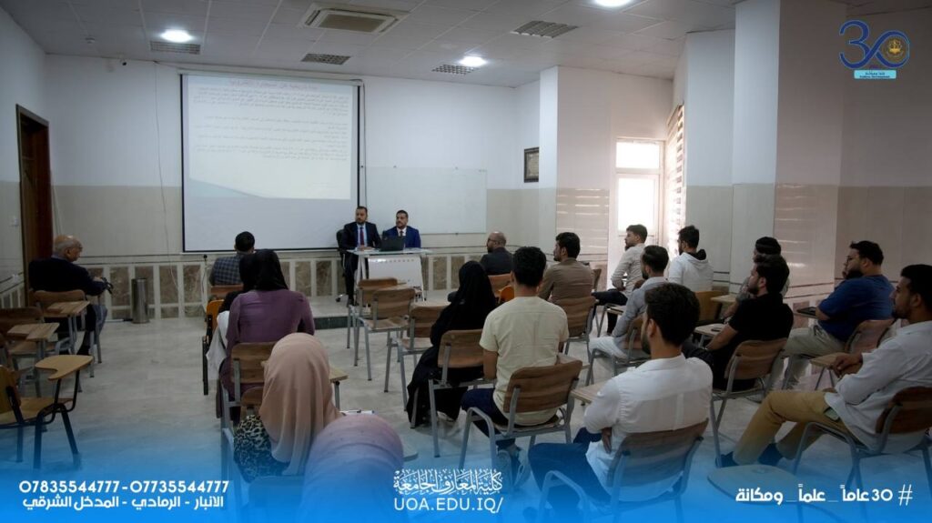 On Saturday, 4th November 2023, the Department of Medical Laboratories Techniques at Al-Maarif University College held a scientific seminar entitled (The Danger of E-Cigarettes on Society), given by Asst. Dr. Mohammed Abood Mohammed, and Asst. Lec. Mohammed Hashim Mohammed.