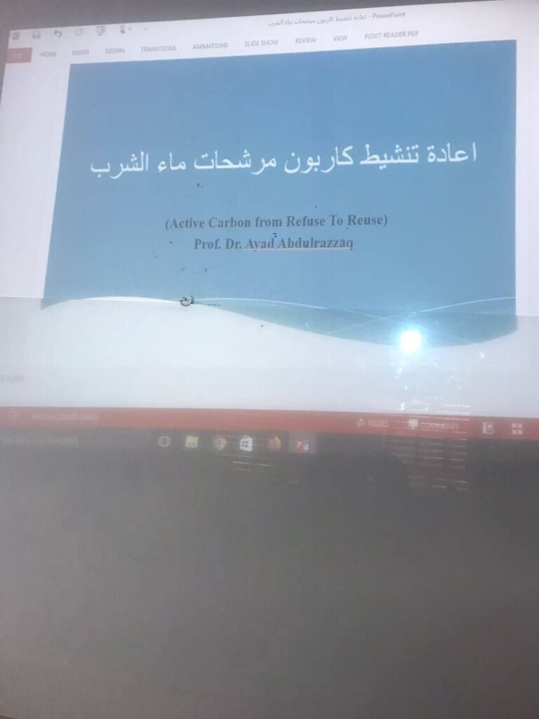 On Tuesday, 21st November 2023, the Department of Medical Laboratories Techniques at Al-Maarif University College held a scientific seminar entitled (Reactivation of Carbon Filters of Water Purification Units), given by the lecturer from the department Dr. Ayad Abd Al-Razaq Mutar.