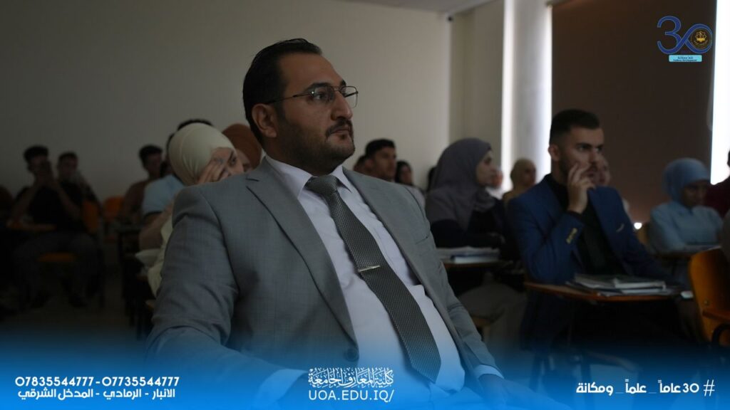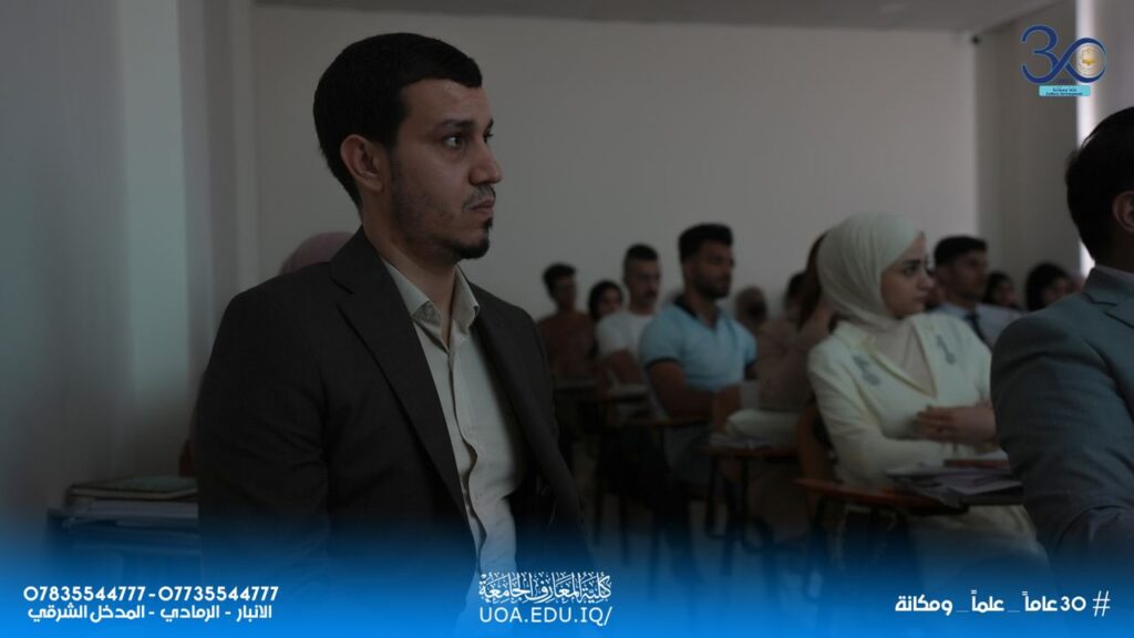 On Sunday, 15th October 2025, the Department of English Language at Al-Maarif University held a scientific symposium entitled (Highlighting and Overcoming English Learning Obstacles through a Commutive Approach). The symposium was presented by several lecturers from the department, Asst. Lec. Dhiyaa Waheed Ghafeer, Asst. Lec. Waleed Khalid Razayek, and Asst. Dr. Marwan Khalil Yossif. The symposium dealt with several topics, including the most important ways to learn the English Language, the obstacles that face the learners, and provided appropriate solutions.