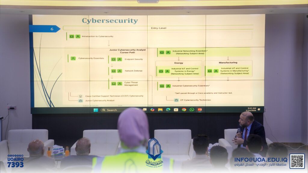 The College of Engineering Technologies – Department of Cybersecurity Engineering Techniques organized a workshop entitled “Modern Trends in Lifelong Learning in Cybersecurity,” as part of the college’s efforts to keep pace with rapid developments in technology and digital security.