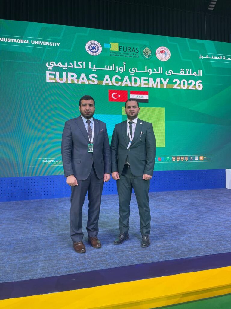 On behalf of the President of Al-Maarif University, Asst. Prof. Dr. Mahmoud Abdulrazzaq, Asst. Prof. Dr. Mohammed Ibrahim Khalaf, Dean of the College of Science, and Asst. Prof. Dr. Mohammed Rabee’ Hashim, Dean of the College of Engineering Technologies, participated in the activities of the international “EURASIA ACADEMY” forum, held at Al-Mustaqbal University, in joint cooperation with the Union of European and Asian Universities (EURASIA).