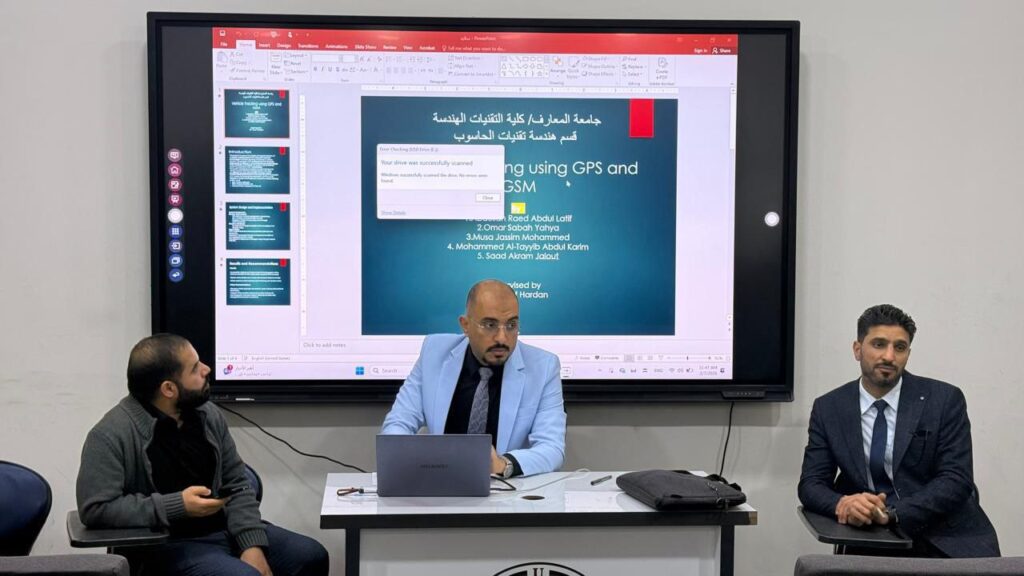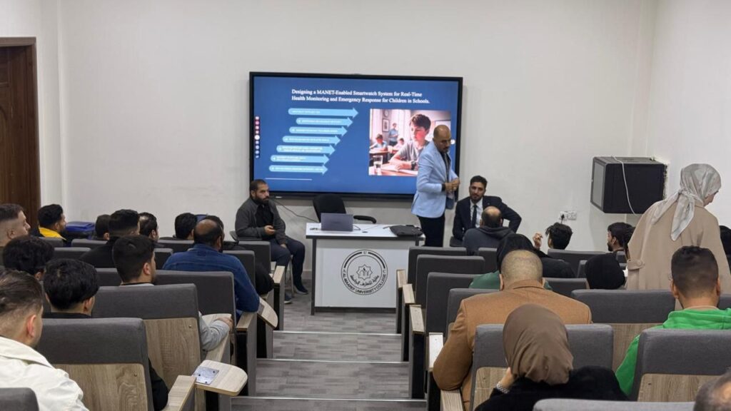 Under the follow-up of the Deanship of the College of Engineering Technologies and under the supervision of the Head of the Department of Computer Engineering Technologies, the seminar discussion for fourth-year students was held, during which students presented their applied scientific projects before the academic staff members for the purpose of academic evaluation of the scientific and applied outcomes of the projects.