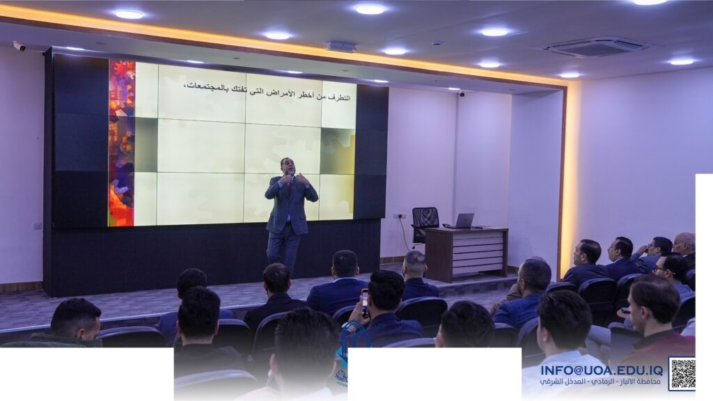 The seminar was delivered by Professor Dr. Akram Obaid Farih, in the presence of Dr. Ahmed Abdulrazzaq Al-Saadi, Chairman of the Board of Al-Maarif University, Dr. Muthanna Al-Mulla, Secretary-General of the University Council, and Dr. Mohammed Fakhri, Dean of the College, along with a number of faculty members and wide participation from the college students.