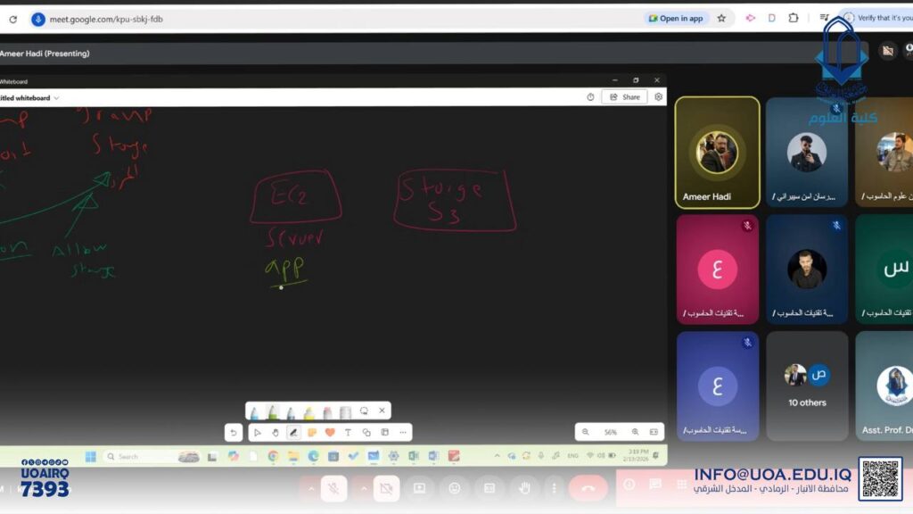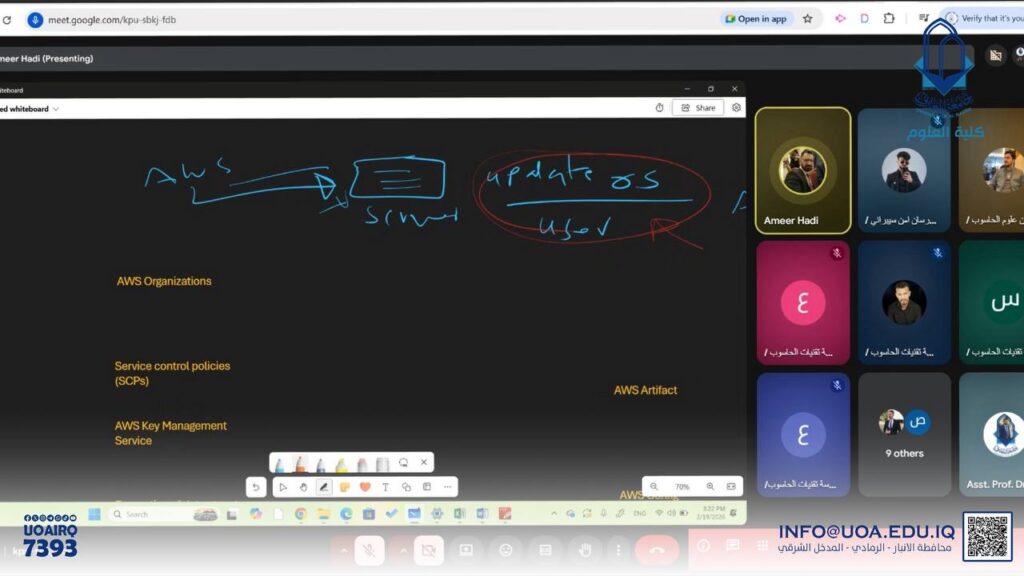 The College of Science organized an online training course in cooperation with Amazon Web Services Academy, the College of Engineering Technologies, and the College of Engineering, based on the initiative launched by the University Presidency under the slogan “From Education to Application.”