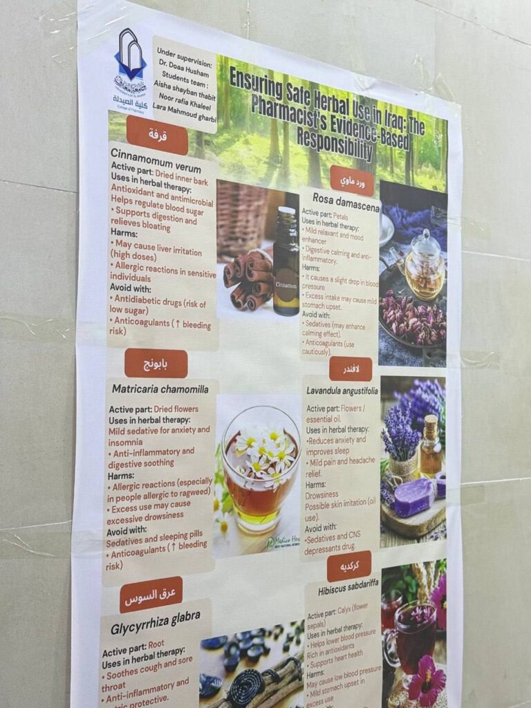 “Ensuring Safe Herbal Use in Iraq: The Pharmacist’s Evidence-Based Responsibility”, under the supervision of Assistant Professor Dr. Doaa Hisham.