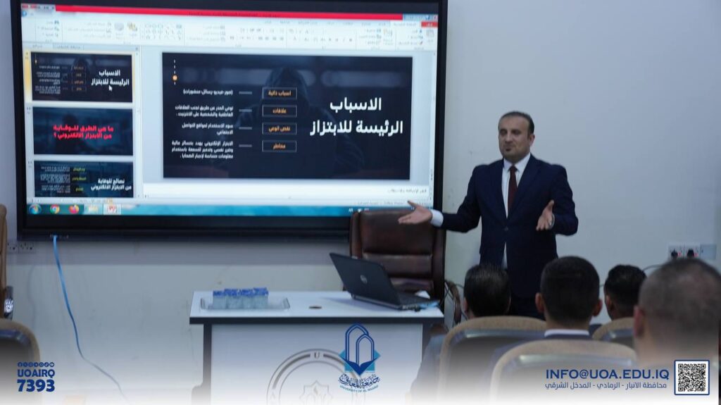 The College of Law at Al-Maarif University, in cooperation with the National Security Service – Anbar Security Directorate, organized an important scientific seminar entitled “Cyber Extortion Crimes, the Exploitation of Images and Personal Information, and Legal and Technical Means of Confrontation.” The seminar was delivered by Major Hussam Hamid, who presented a comprehensive overview addressing …